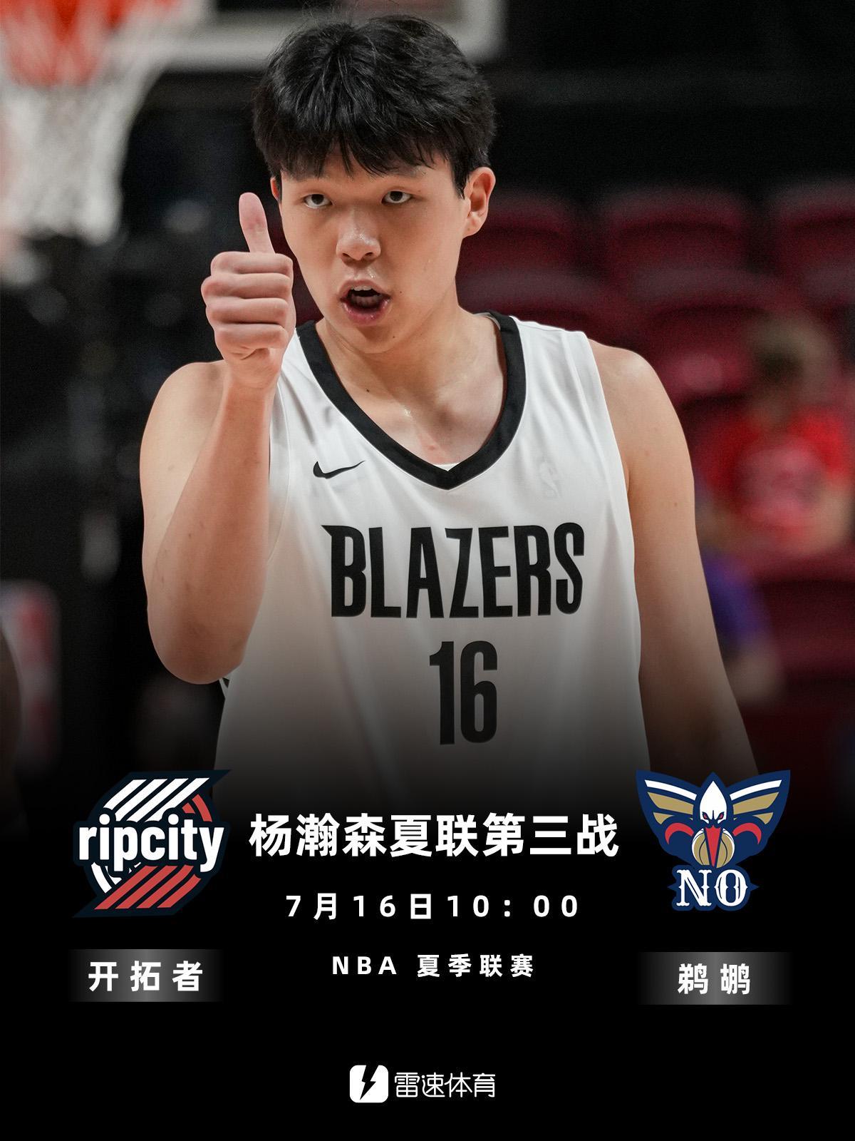 雷速体育7月15日讯 明日10点NBA夏季联赛开拓者vs鹈鹕。